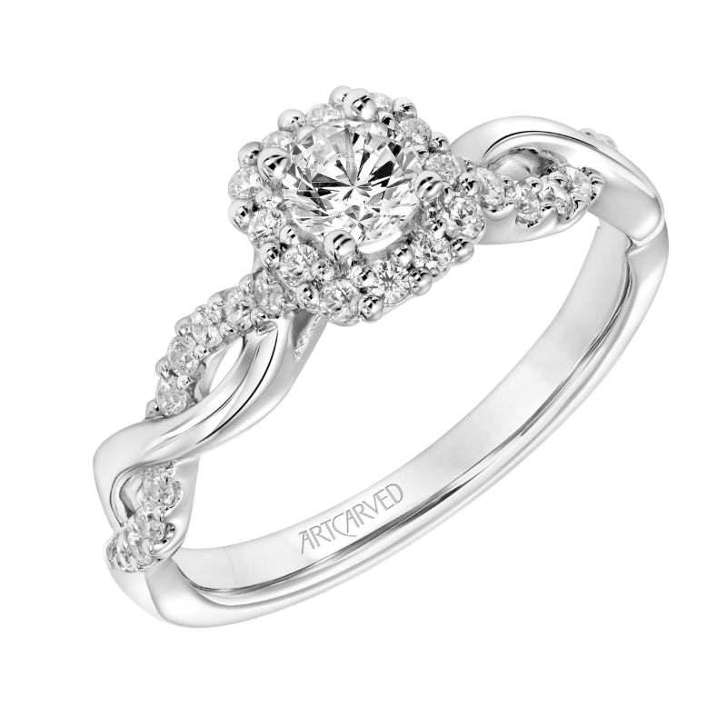 Artcarved Bridal Semi-Mounted with Side Stones Contemporary One Love Halo Engagement Ring Bella 18K White Gold - 31-V320ARW-E.05
