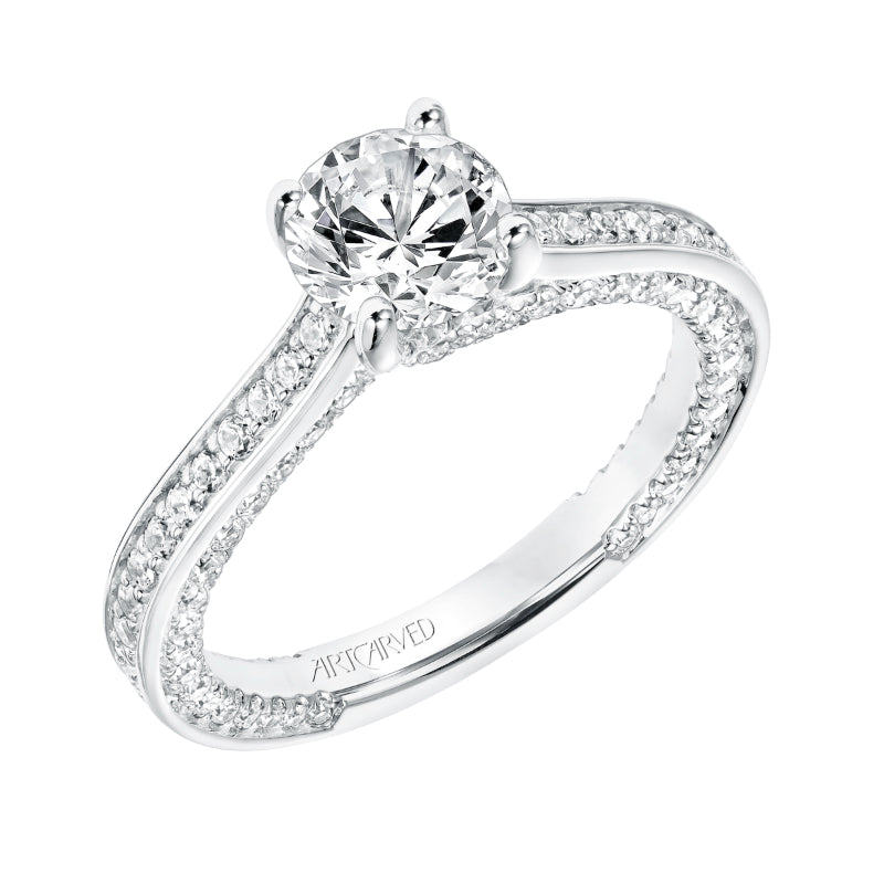 Artcarved Bridal Semi-Mounted with Side Stones Contemporary Twist Diamond Engagement Ring Juno 14K White Gold - 31-V712ERW-E.01