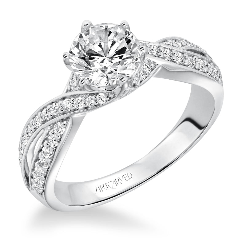 Artcarved Bridal Semi-Mounted with Side Stones Contemporary Twist Diamond Engagement Ring Presley 14K White Gold - 31-V593ERW-E.01