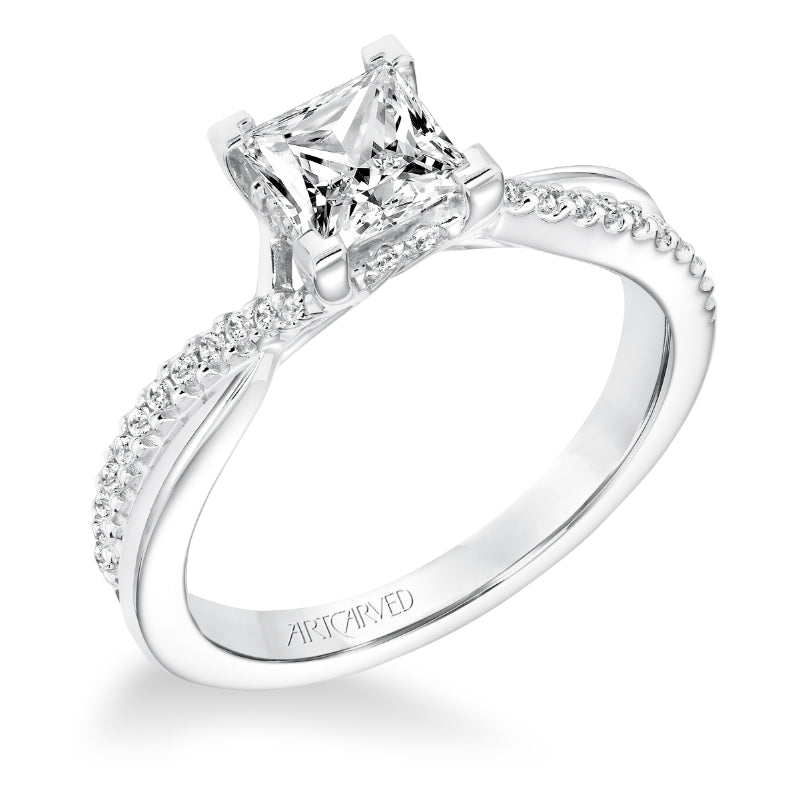 Artcarved Bridal Semi-Mounted with Side Stones Contemporary Twist Diamond Engagement Ring Tate 14K White Gold - 31-V671ECW-E.01