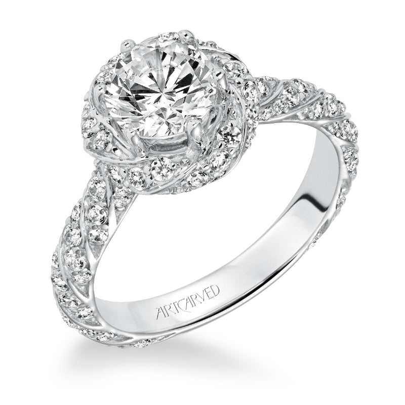 Artcarved Bridal Semi-Mounted with Side Stones Contemporary Twist Halo Engagement Ring Bailey 14K White Gold - 31-V605ERW-E.01
