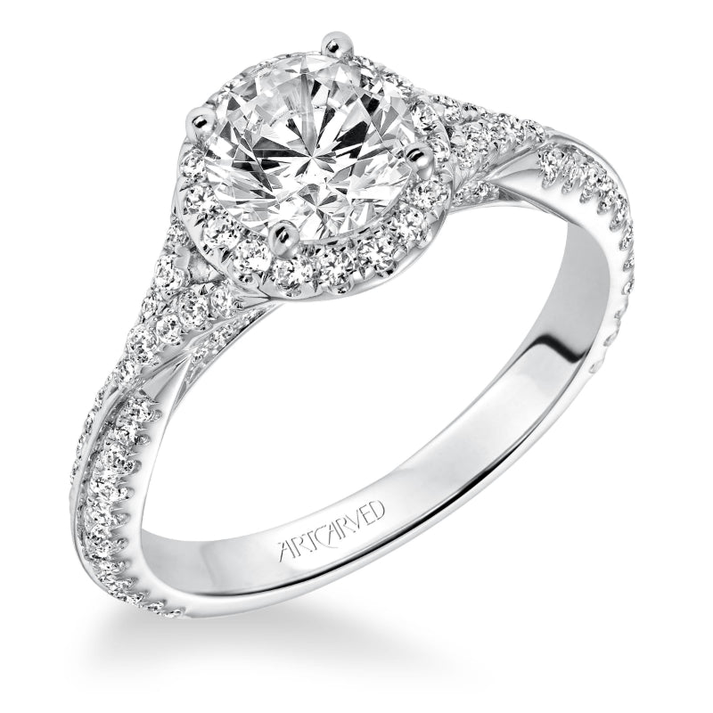Artcarved Bridal Semi-Mounted with Side Stones Contemporary Twist Halo Engagement Ring Liana 14K White Gold - 31-V592ERW-E.01