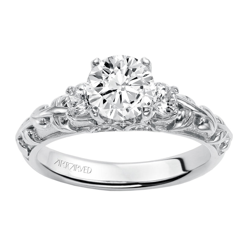 Artcarved Bridal Semi-Mounted with Side Stones Vintage 3-Stone Engagement Ring Avery 14K White Gold - 31-V287ERW-E.01