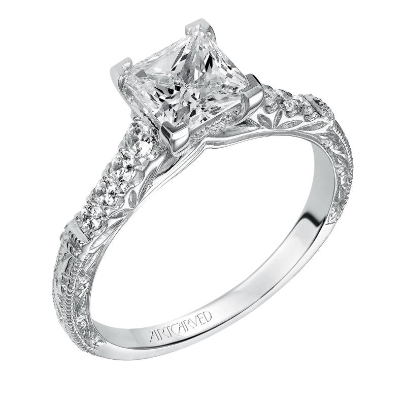 Artcarved Bridal Semi-Mounted with Side Stones Vintage Engagement Ring Charmaine 14K White Gold - 31-V493FCW-E.01