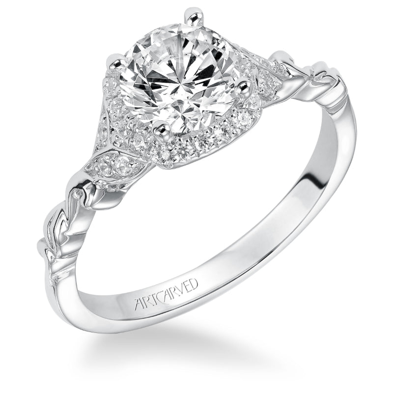 Artcarved Bridal Semi-Mounted with Side Stones Vintage Filigree Halo Engagement Ring Yvette 14K White Gold - 31-V525ERW-E.01