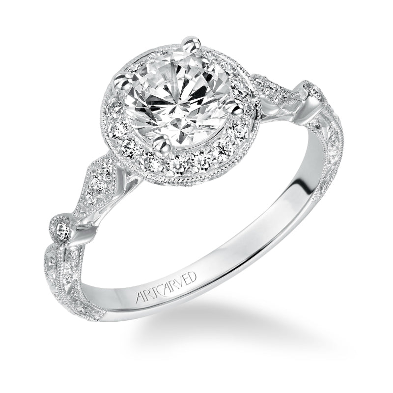 Artcarved Bridal Semi-Mounted with Side Stones Vintage Halo Engagement Ring Crystal 14K White Gold - 31-V518ERW-E.01