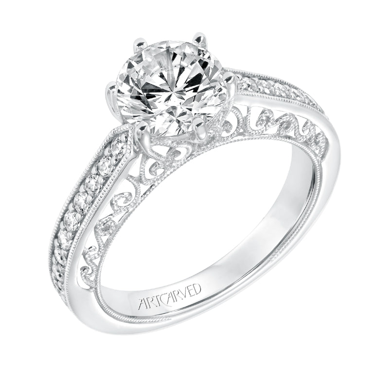 Artcarved Bridal Semi-Mounted with Side Stones Vintage Heritage Engagement Ring Cossette 14K White Gold - 31-V724GRW-E.01