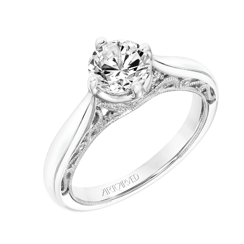 Artcarved Bridal Semi-Mounted with Side Stones Vintage Heritage Engagement Ring Gayla 14K White Gold - 31-V759ERW-E.01