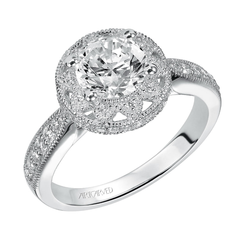 Artcarved Bridal Semi-Mounted with Side Stones Vintage Milgrain Halo Engagement Ring Alana 14K White Gold - 31-V366FRW-E.01