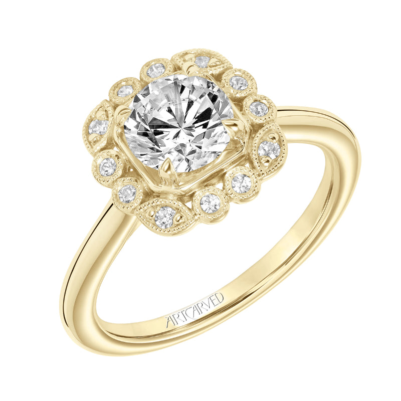 Artcarved Bridal Semi-Mounted with Side Stones Vintage Vintage Halo Engagement Ring Mabel 14K Yellow Gold - 31-V828ERY-E.01