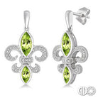 8X4mm Marquise Cut Peridot, 6X3mm Marquise Cut Peridot And 1/20ct Round Cut Diamond Fleur De Lis Earrings In Sterling Silver