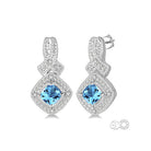 Sterling Silver White 10 Single Cut I-J I1-I2 Diamond 0.03ct and Blue Topaz Cushion Checker Earrings 5X5 MM