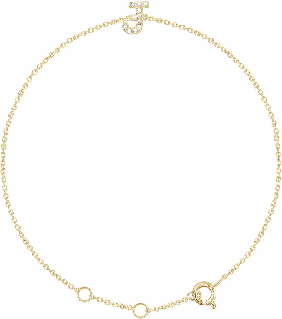 652689 / Set / 14K Yellow / J / Polished / .05 Ctw Diamond 6-7 Inch Initial Bracelet