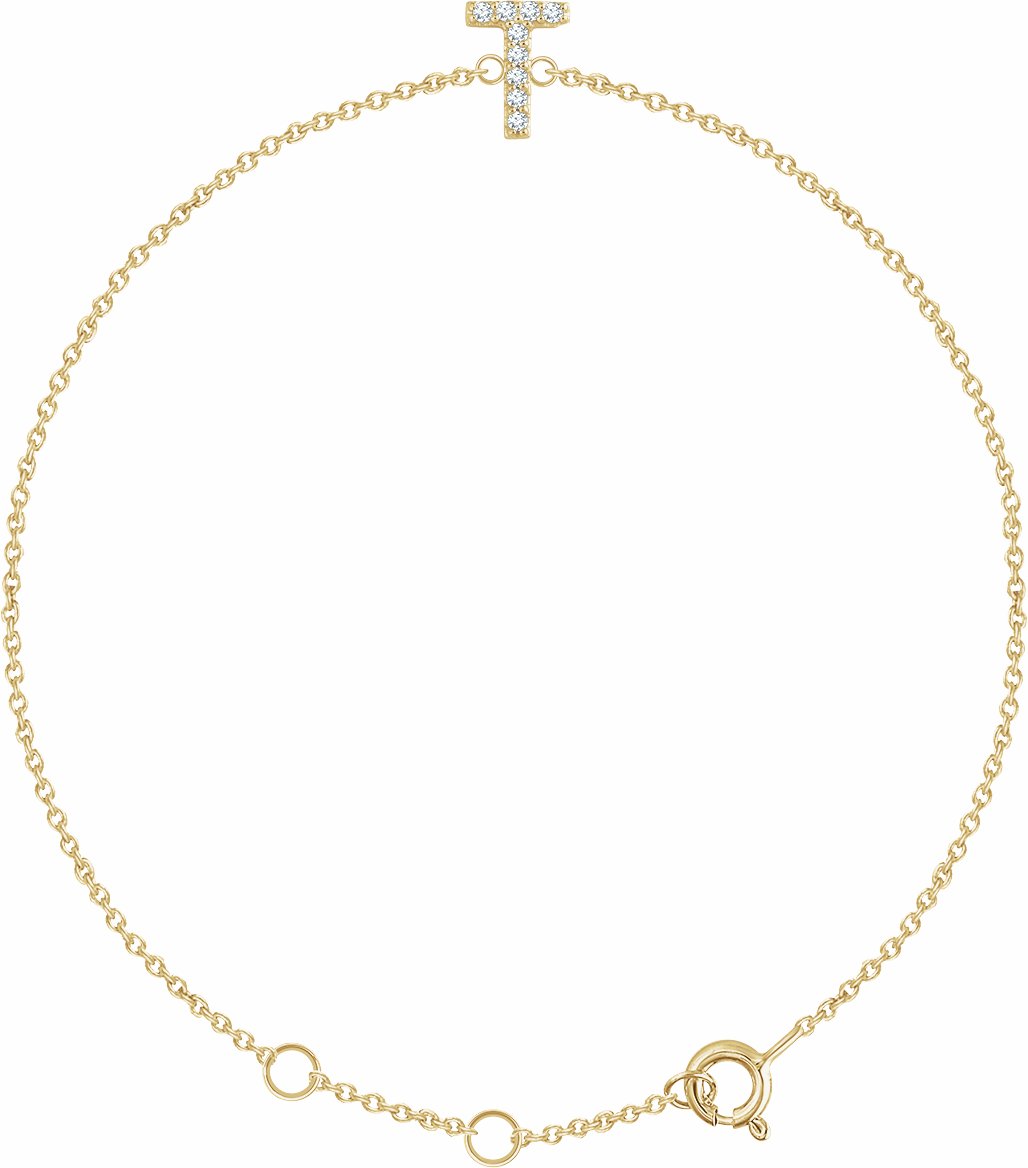 14K Yellow .05 CTW Diamond Initial T 6-7 Bracelet - 65268960046P