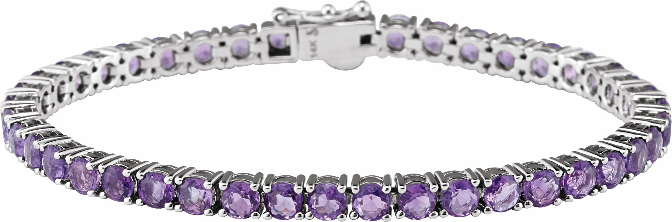 651205 / 14K White / Bracelet / Set / 07.15 Inch / Round / 04.00 Mm / Amethyst / Polished / Genuine Amethyst Bracelet