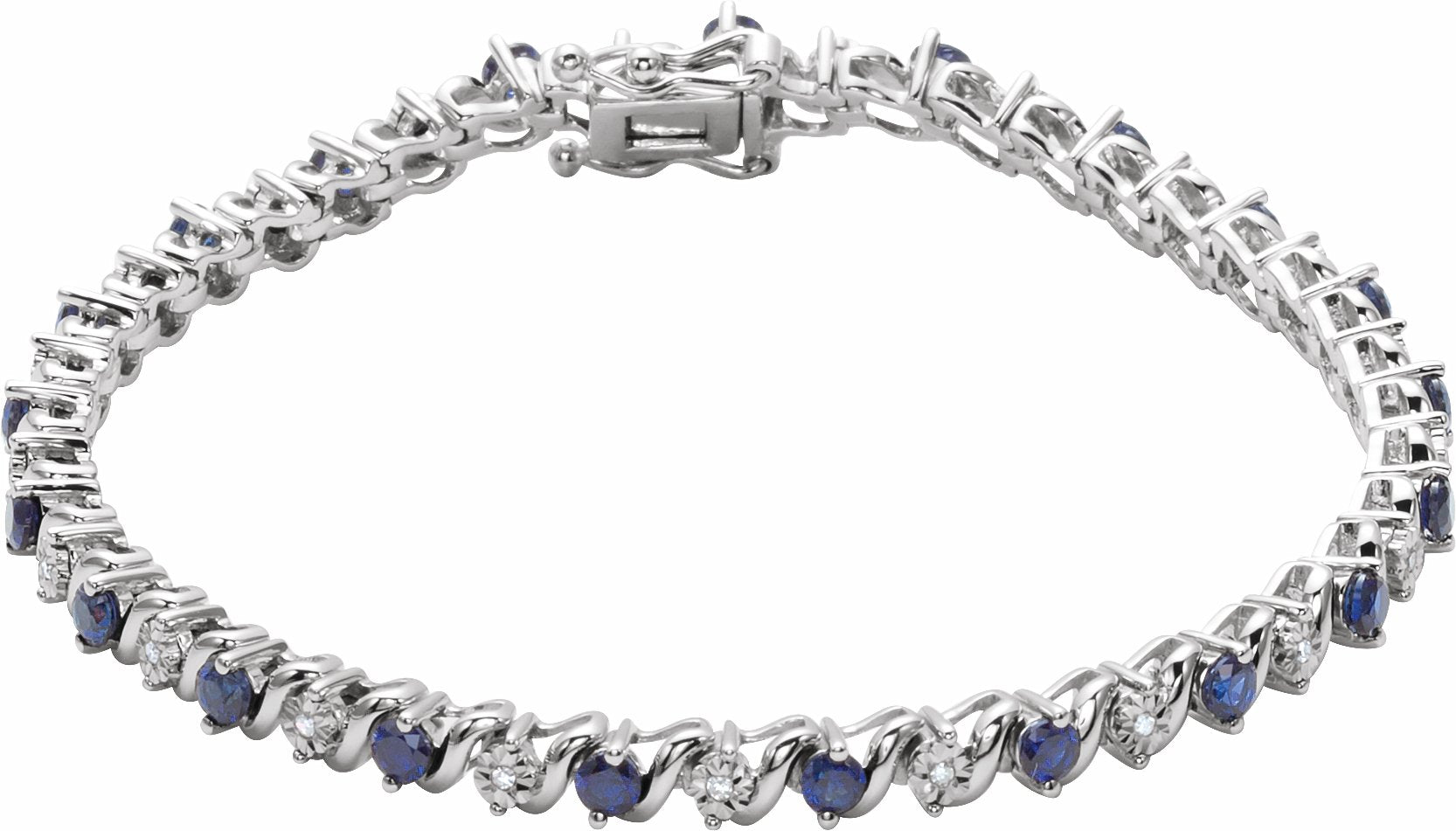 651634 / 14K White / Blue Sapphire/Diamond / Blue Sapphire And 1/10 Ctw Diamond Bracelet