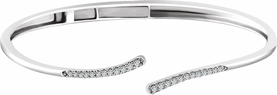 652877 / Set / 14K White / Polished / 1/4 Ctw Diamond Bypass Hinged Cuff 7 Inch Bracelet