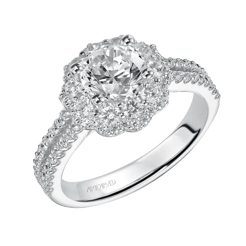 Artcarved Bridal Mounted with CZ Center Contemporary Halo Engagement Ring Jacqueline 14K White Gold - 31-V453ERW-E.00