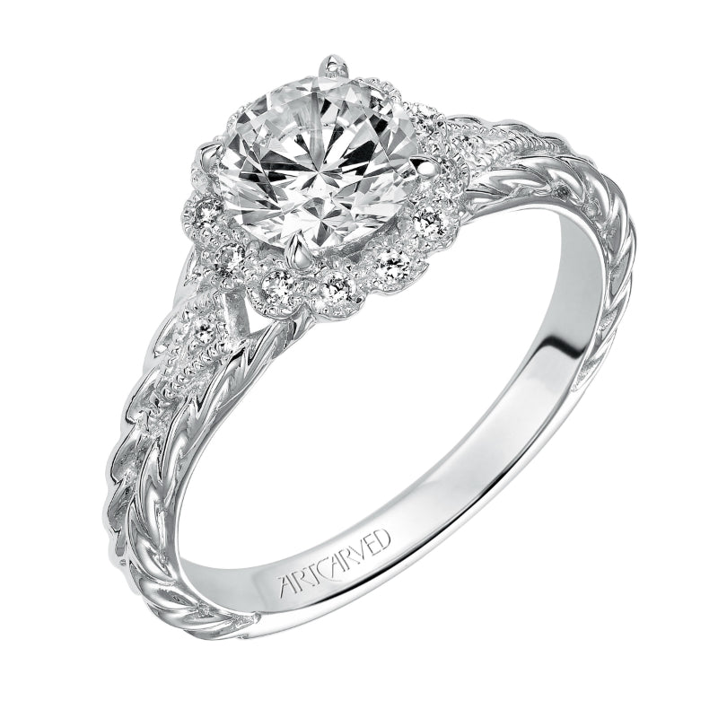 Artcarved Bridal Mounted with CZ Center Contemporary Twist Halo Engagement Ring Lila 14K White Gold - 31-V462ERW-E.00