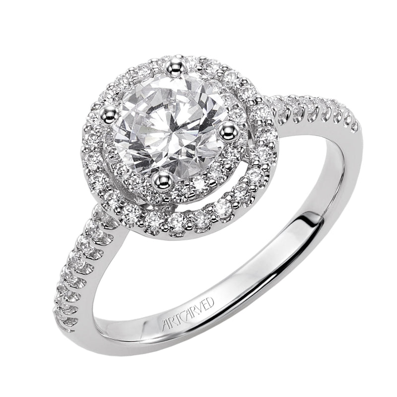Artcarved Bridal Semi-Mounted with Side Stones Classic Halo Engagement Ring Sandy 14K White Gold - 31-V380ERW-E.01