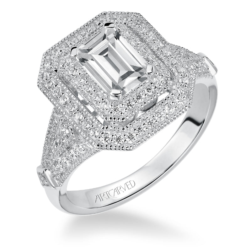 Artcarved Bridal Semi-Mounted with Side Stones Vintage Milgrain Halo Engagement Ring Selma 14K White Gold - 31-V534EEW-E.01