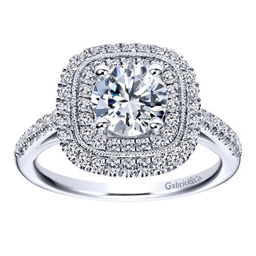 Gabriel & Co 14k White Gold Round Double Halo Engagement Ring