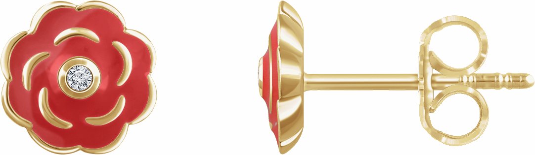 10K Yellow .01 CTW Diamond Enamel Flower Earrings - 65268460001P