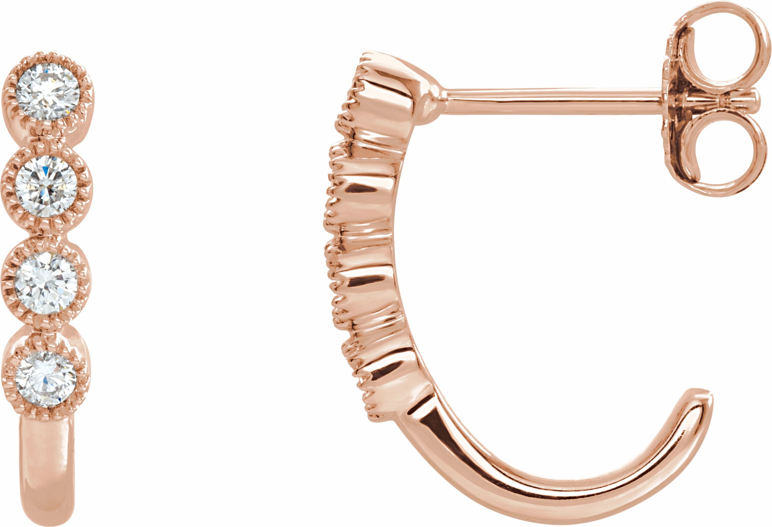 653413 / Set / 14K Rose / Pair / Polished / 1/4 Ctw Diamond J-Hoop Earrings With Backs