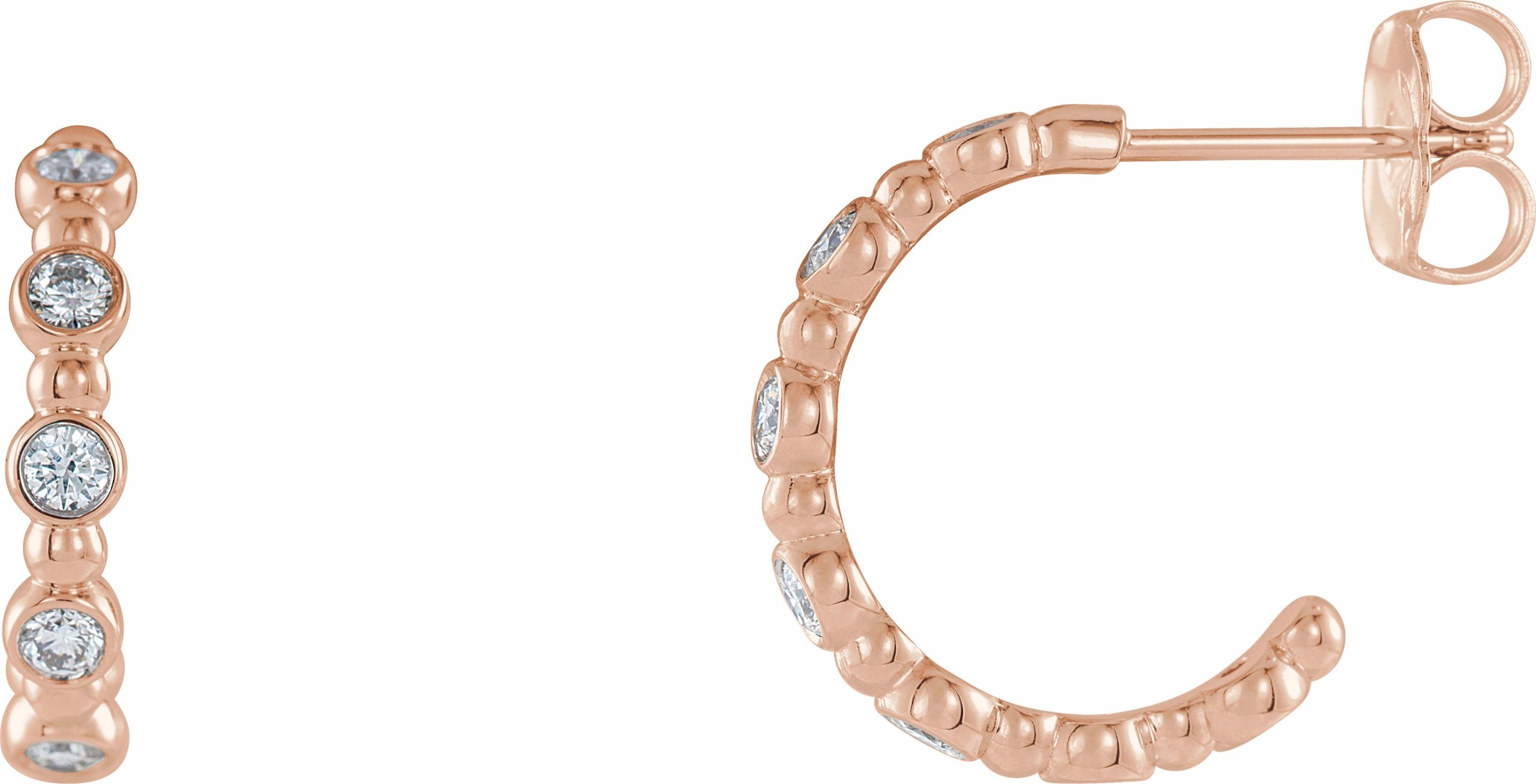 86685 / Set / 14K Rose / Pair / Polished / 3/8 Ctw Diamond Beaded Hoop Earrings With Backs