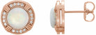 86284 / Set / 14K Rose / White Opal / Pair / Polished / Genuine Cabochon Opal And 1/8 Ctw Diamond Earrings