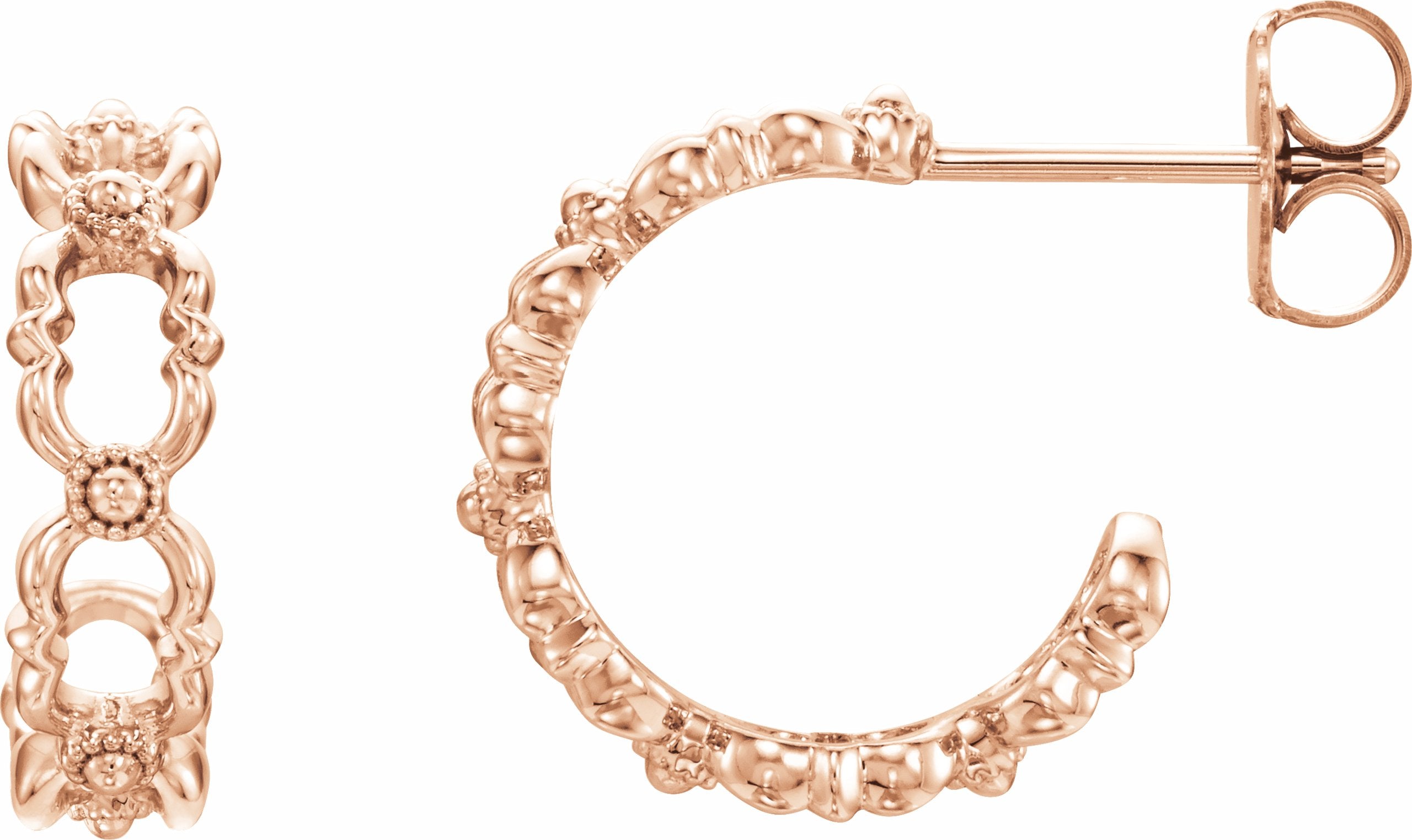 86644 / 14K Rose / Pair / Polished / Quatrefoil Hoop Earring With Back