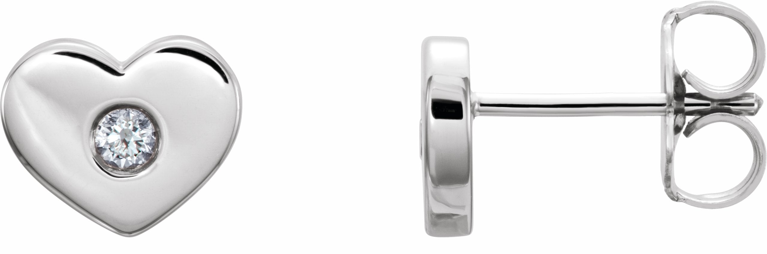 86336 / Set / 14K White / Diamond / Polished / .06 Ctw Diamond Heart Earrings With Backs