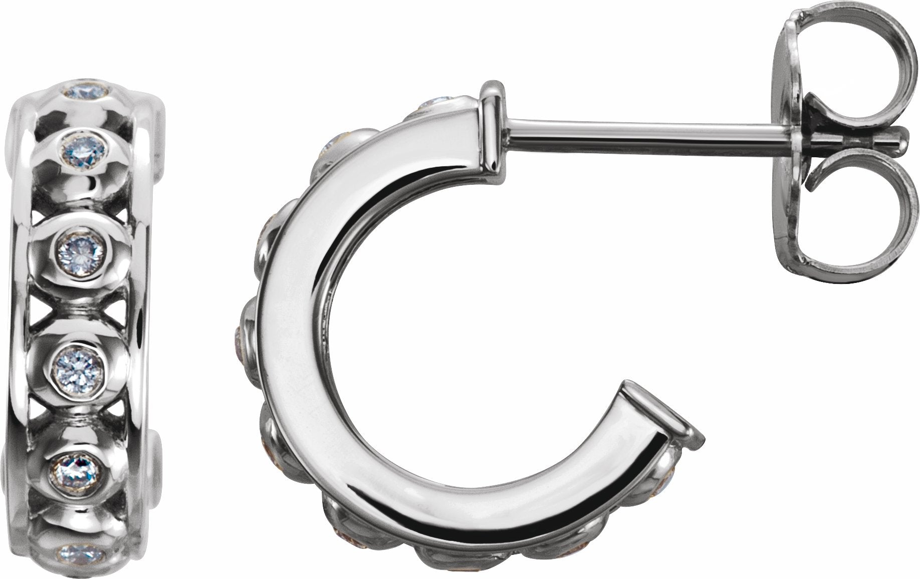 86372 / Set / Diamond / Round / 1 Mm / Pair / 0.07 Ctw / 10.73 Mm / 14K White / I1 / Friction Backs Included / Polished / Hoop Earrings