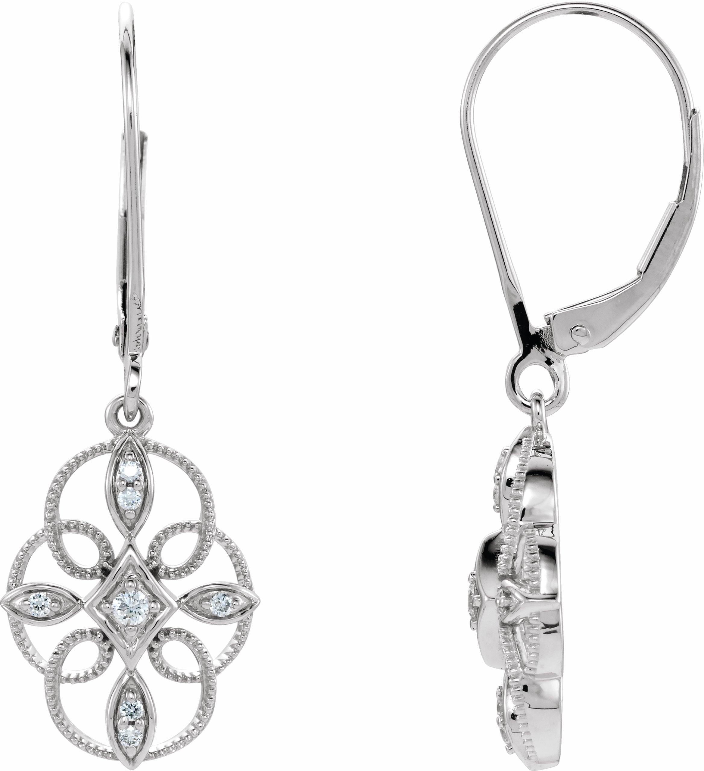 14K White 1/10 CTW Diamond Granulated Filigree Earrings - 65238160000P