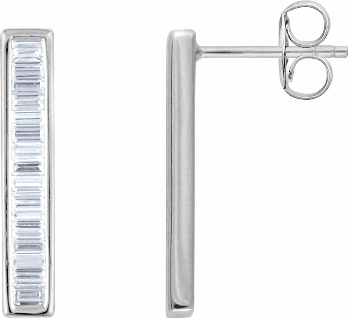 14K White 1/2 CTW Diamond Baguette Bar Earrings - 65188660001P