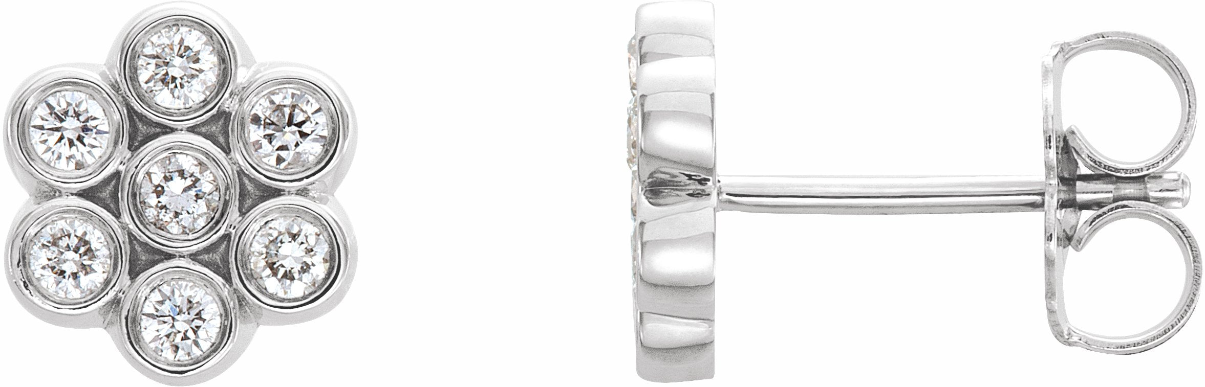 86462 / Set / 14K White / Pair / Polished / 1/4 Ctw Diamond Cluster Earrings With Backs