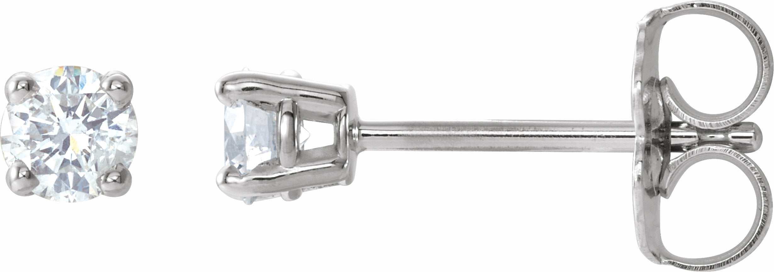 1874 / 14K White / Set / Round / Diamond / Pair / 3Mm :: 1/5 Ctw / I3, G-H / Friction Post / Friction Backs Included / 4-Prong / Polished / Light Basket Solitaire Stud Earrings