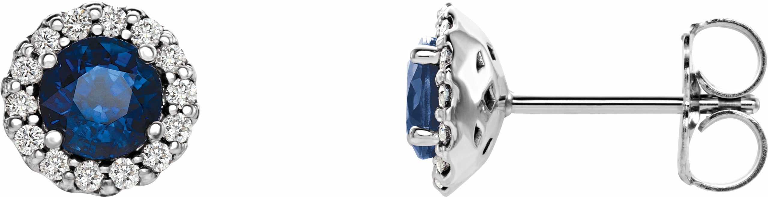 14K White 4.5 mm Round Blue Sapphire & 1/10 CTW Diamond Earrings - 86509656P