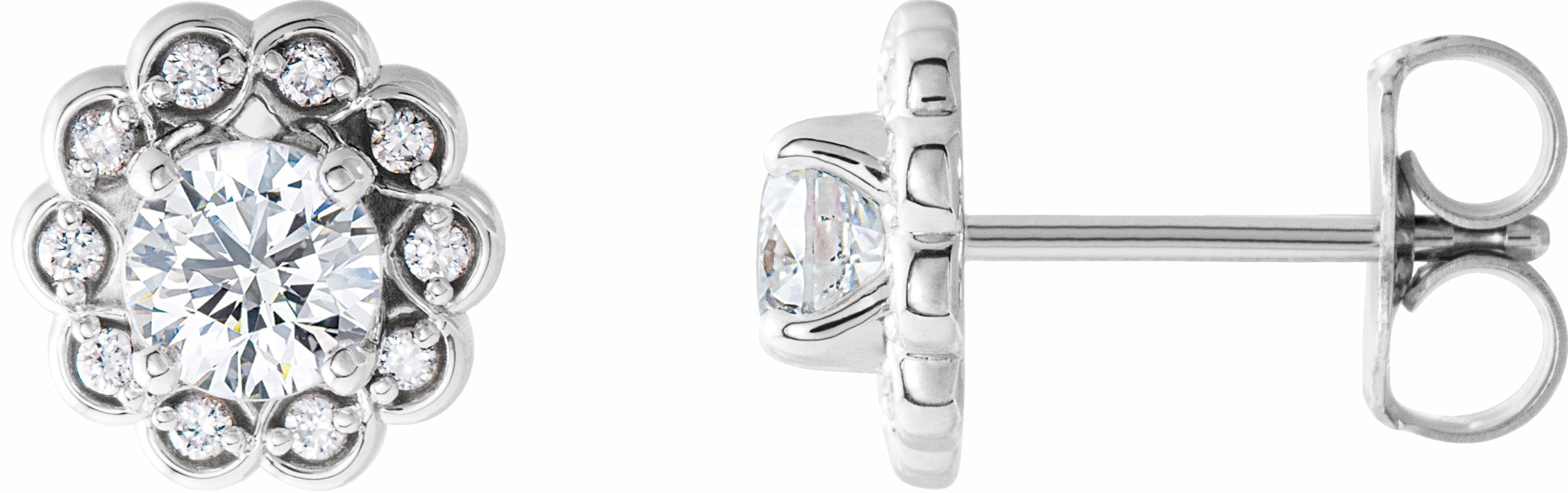14K White 5/8 CTW Diamond Halo-Style Earrings - 86663605P