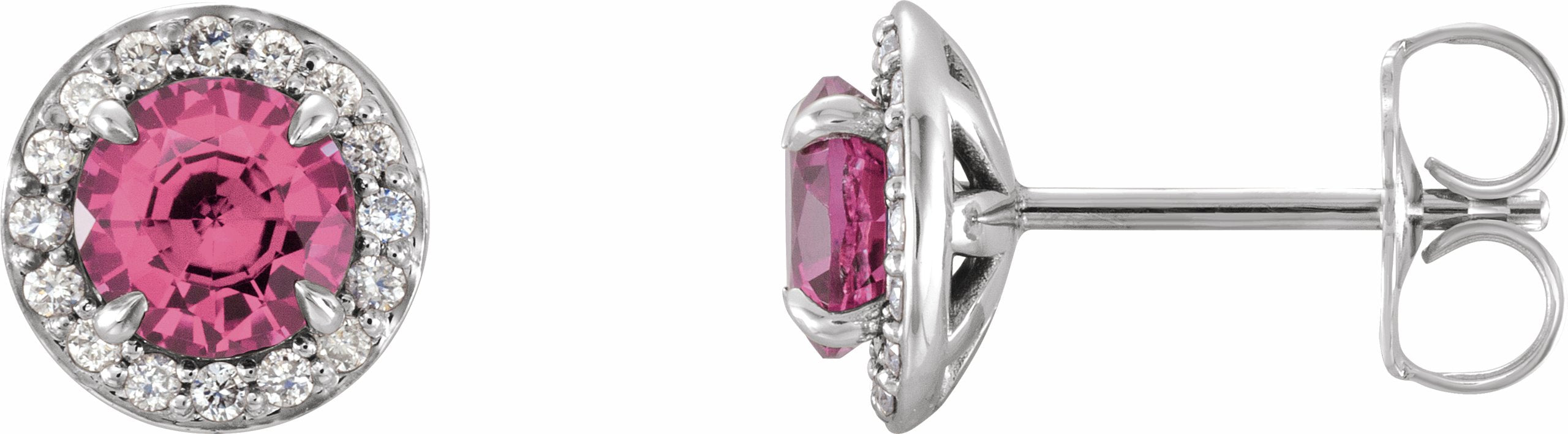14K White 5 mm Round Pink Tourmaline & 1/8 CTW Diamond Earrings - 864586029P