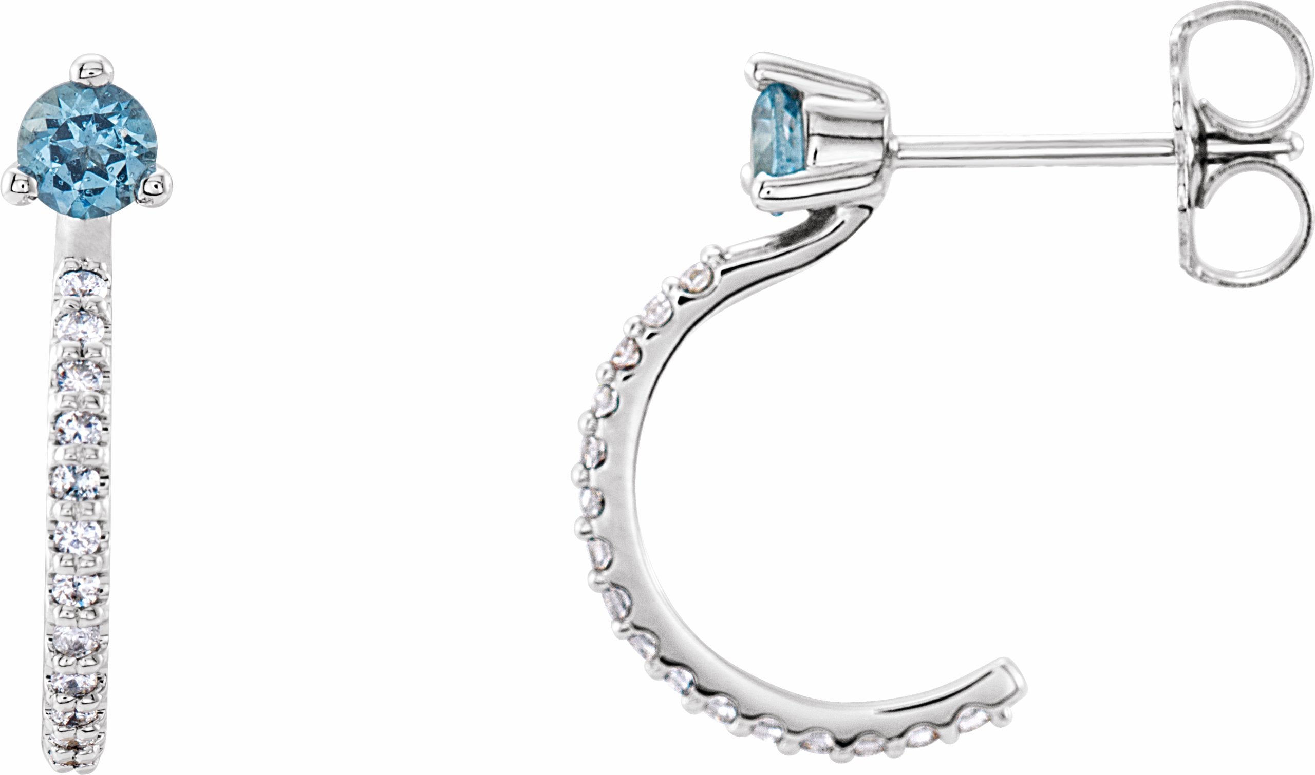 86686 / Earring / Set / Aquamarine / Round / 3 Mm / 14K White / I1, G-H :: 1/6 Ctw / Pair / Friction Backs Included / Polished / J-Hoop Earrings