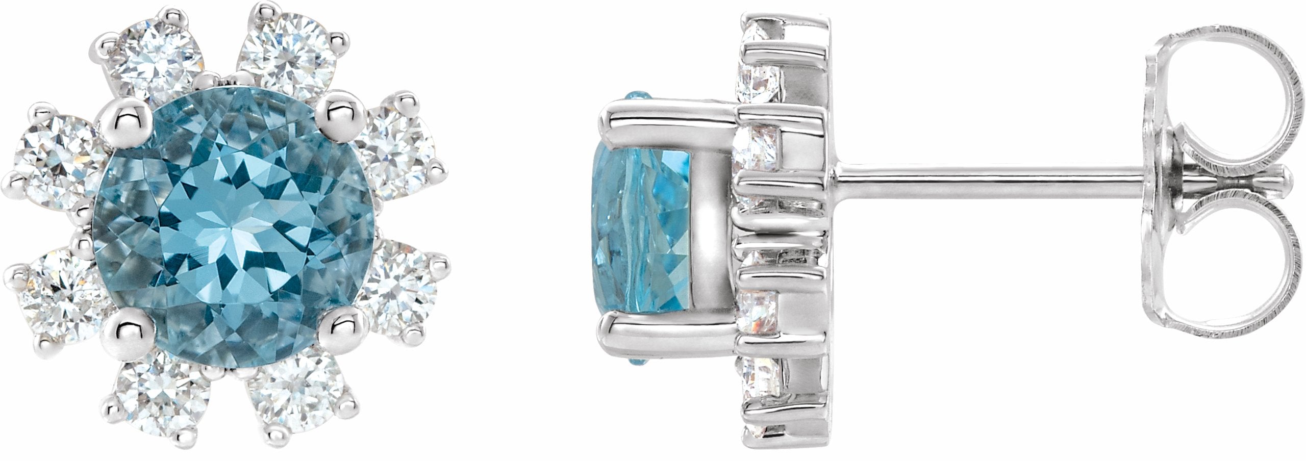 2000028 / Set / 14K White / Blue Zircon / 4 Mm / Pair / Polished / Genuine Blue Zircon And .07 Ctw Diamond Earrings