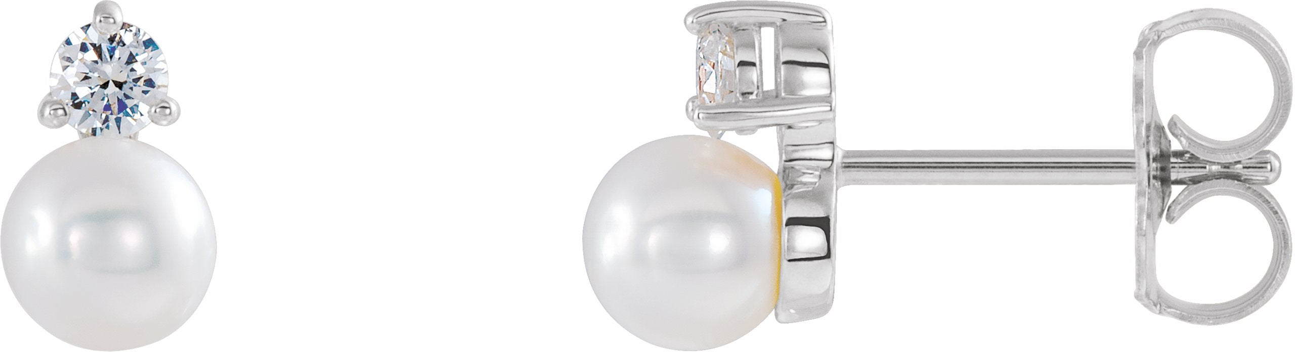 86719 / Set / 14K White / 5.0-5.5 Mm / Pair / Polished / White Freshwater Pearl And 1/5 Ctw Diamond Earrings