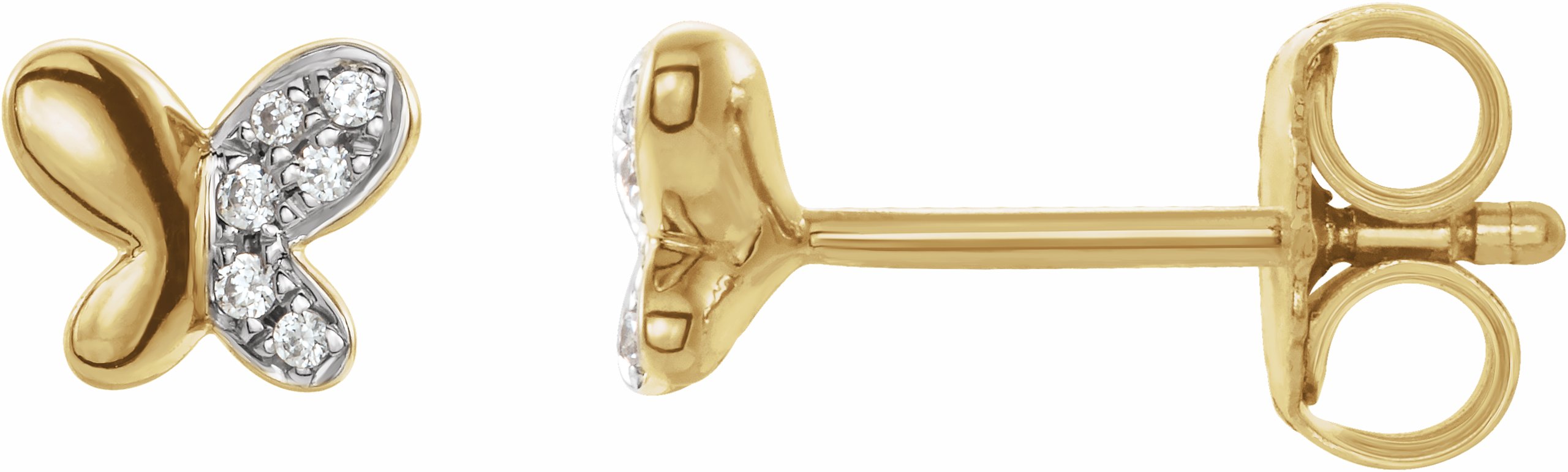 653404 / Set / 14K Yellow / Pair / Polished / .04 Ctw Diamond Butterfly Youth Earrings With Backs