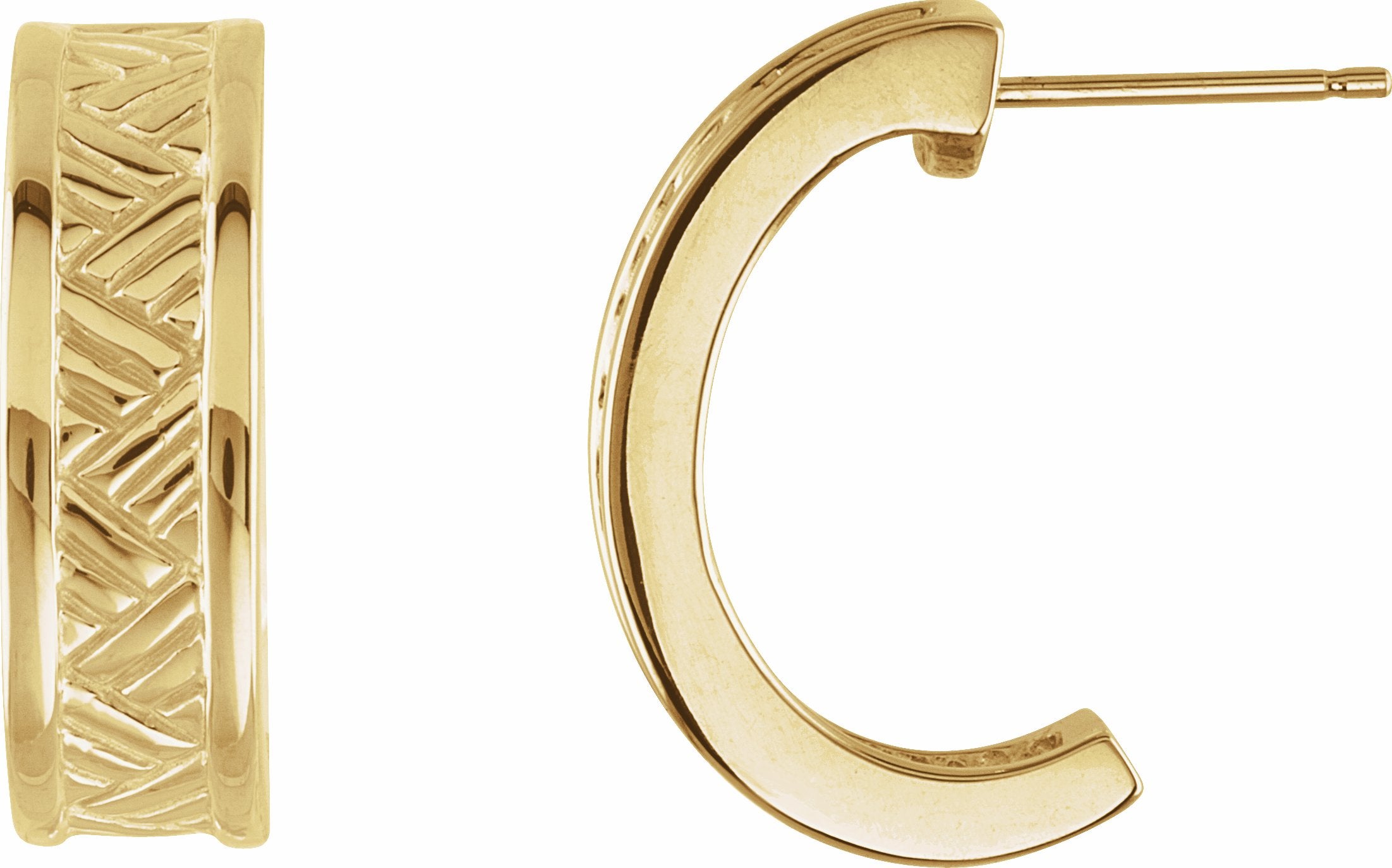 14K Yellow 19.5x6 mm Patterned J-Hoop Earrings - 82296605P