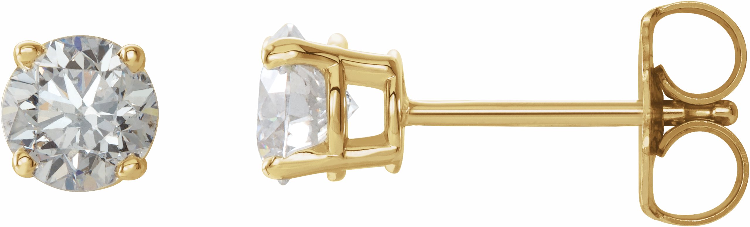 1874 / 14K Yellow / Set / Round / Diamond / Pair / 4.5Mm :: 3/4 Ctw / I3, G-H / Friction Post / Friction Backs Included / 4-Prong / Polished / Light Basket Solitaire Stud Earrings