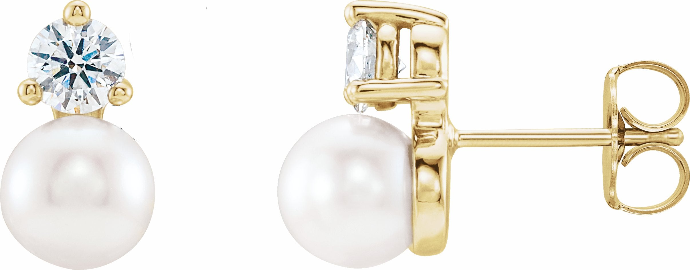 86719 / Set / 14K Yellow / 4.0-4.5 Mm / Pair / Polished / White Freshwater Pearl And 1/8 Ctw Diamond Earrings