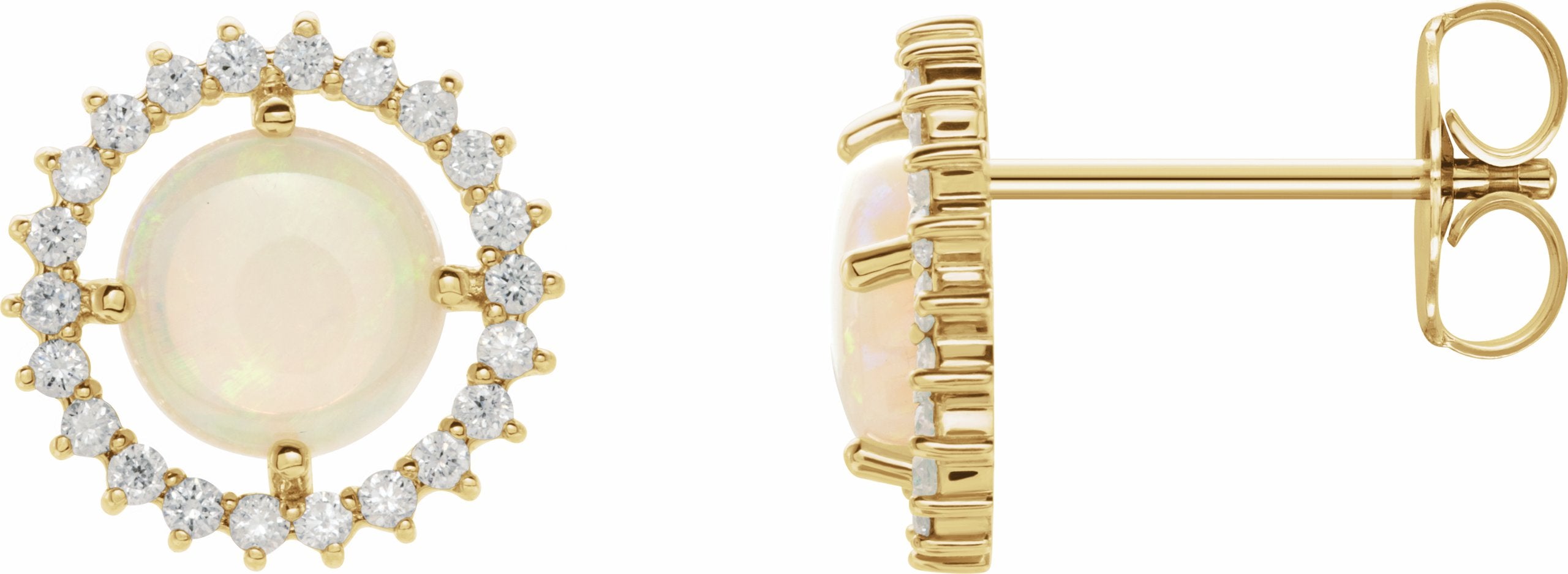 86657 / Set / 14K Yellow / White Opal / Pair / Polished / Opal And 1/8 Ctw Diamond Earrings