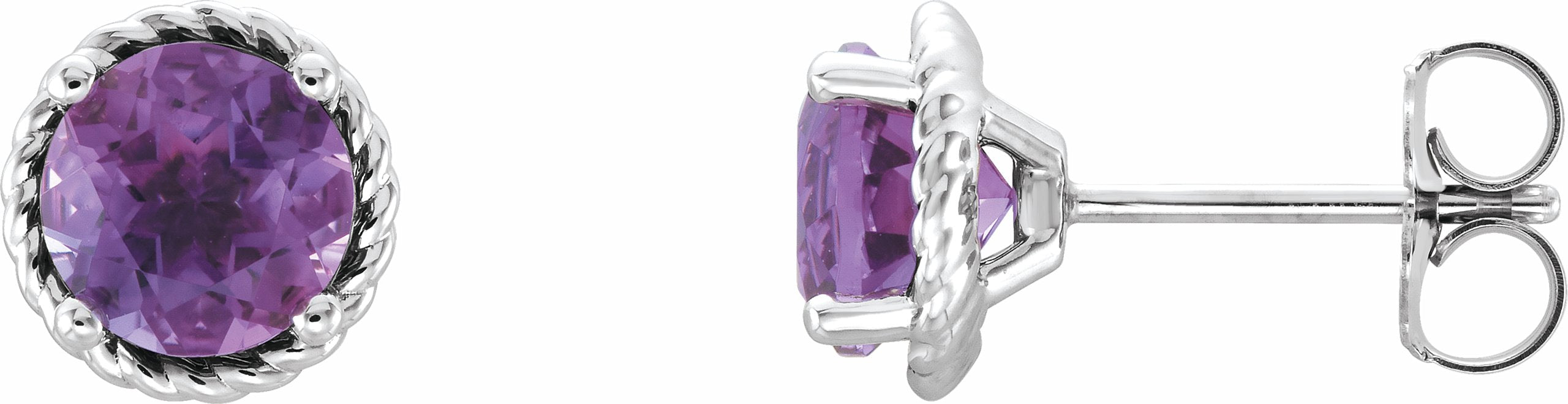 86553 / Set / 14K White / Amethyst / 6 Mm / Pair / Polished / Genuine Amethyst Rope Earrings With Backs