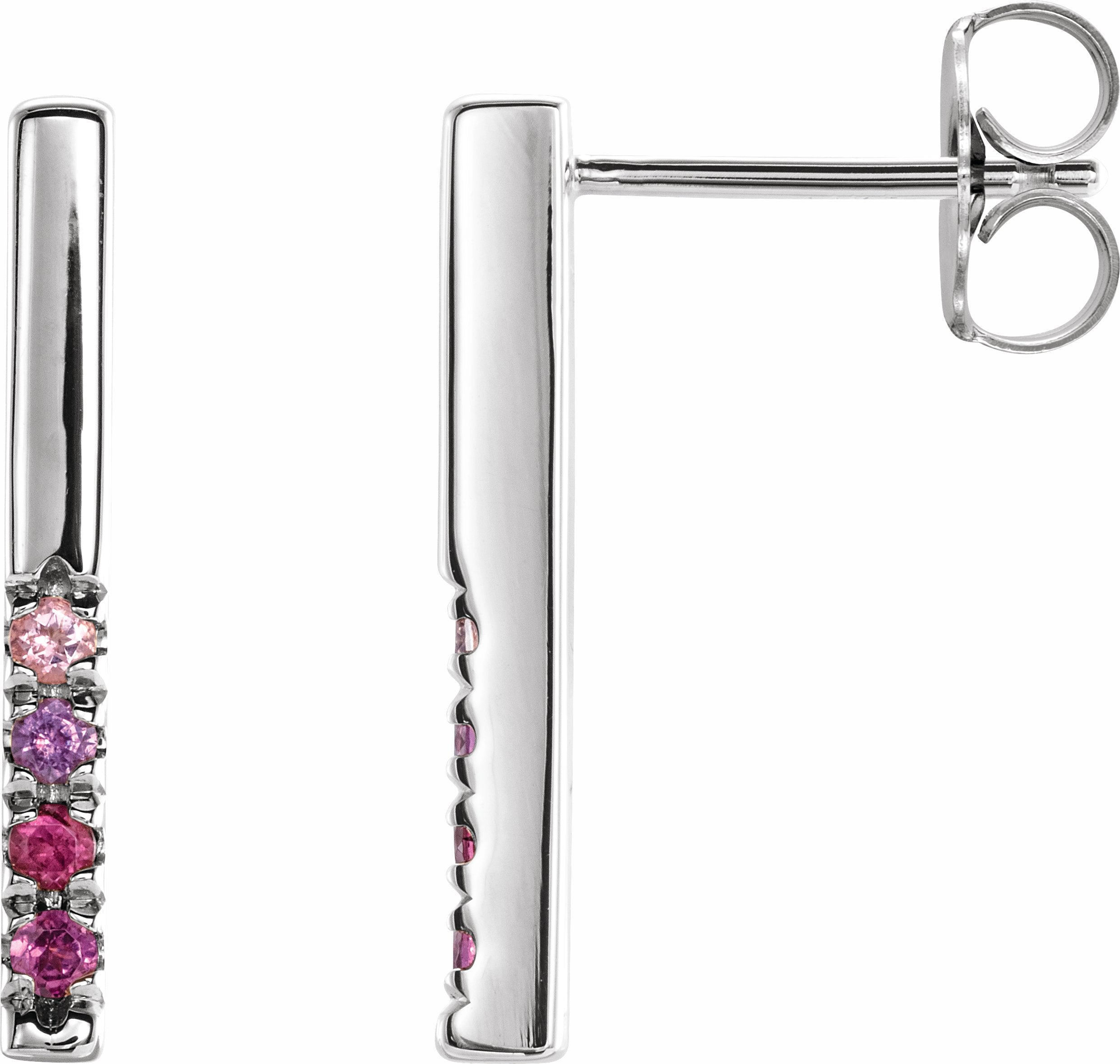 87067 / Set / 14K White / Pair / Polished / Genuine Pink Ombre Gemstone Bar Earrings